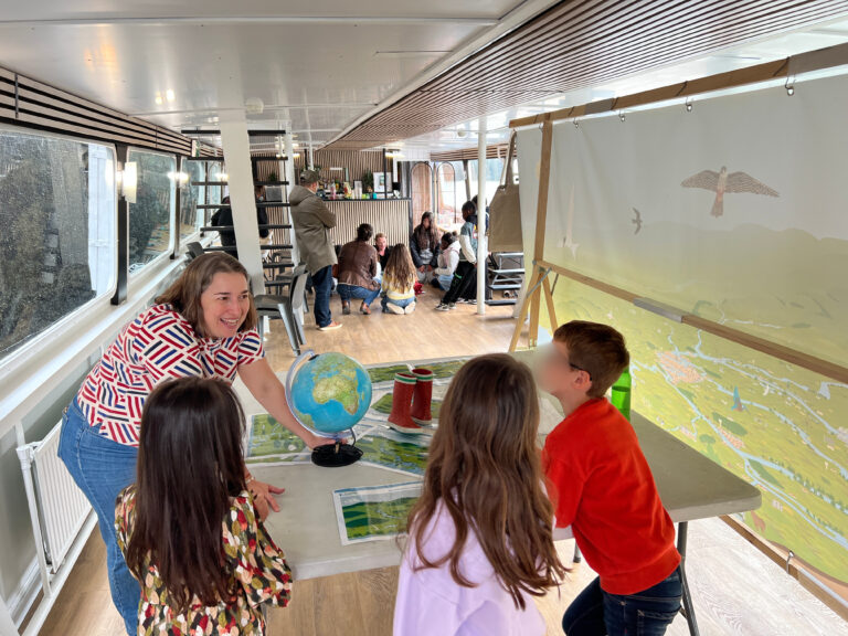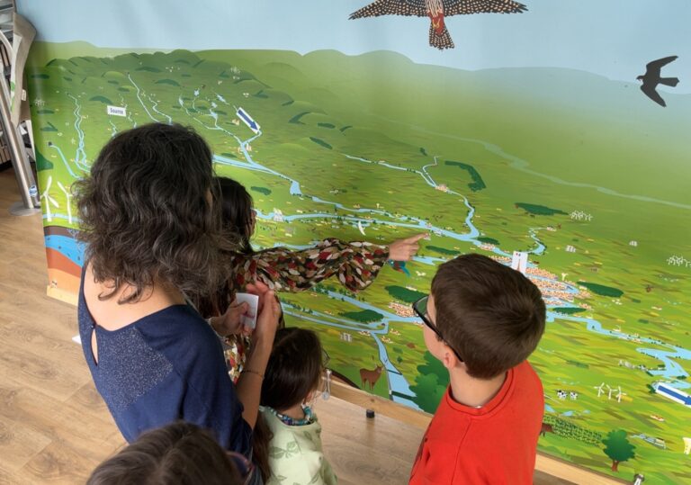 A l’aide de cette fresque Seine Grandeur Nature et d'étiquettes autocollantes, on aborde en fonction de l’âge des participants :