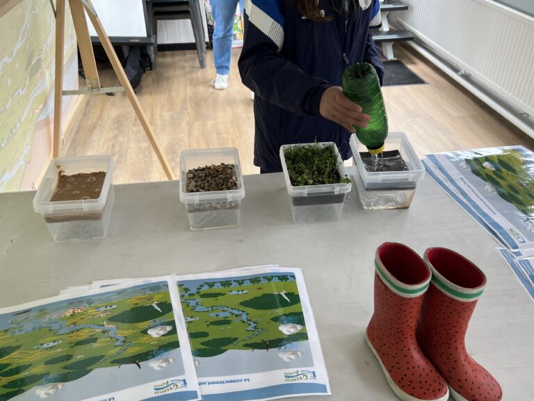 Nous accompagnons cette animation d'un atelier pédagogique sur la perméabilité des sols, avec des manipulations permettant d'appréhender les risques de crues et inondations ainsi que l'adaptation au changement climatique. Le contenu est également adapté à l'âge des participants :